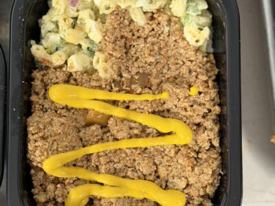 Chicken Breast, Homemade Honey Bourbon Sauce (Worcester Sauce, Bourbon, Honey, Low-Sodium Soy Sauce), Garlic, Seasoned Roasted Green Beans, Cinnamon Sweet Potatoes Mashed